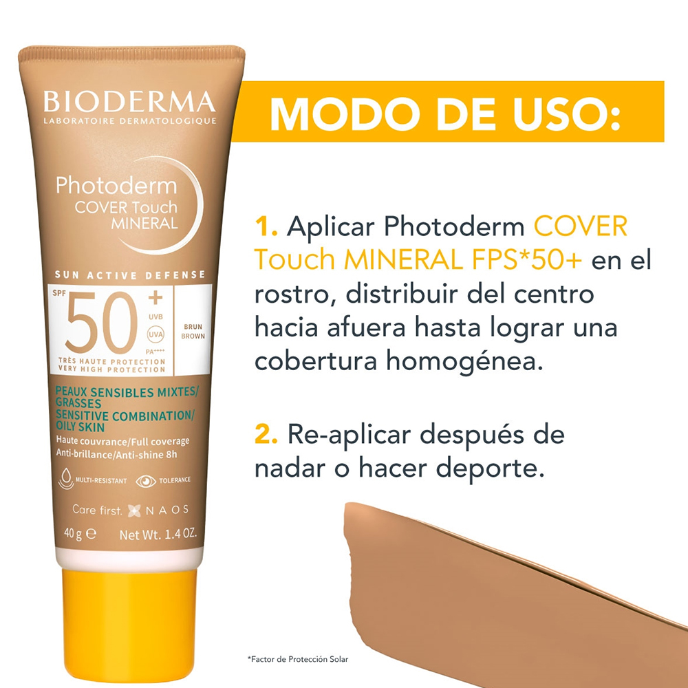 - APLICAR Photoderm COVER Touch MINERAL FPS 50+ en el rostro, distribuye del centro hacía afuera hasta lograr una cobertura homogénea.
