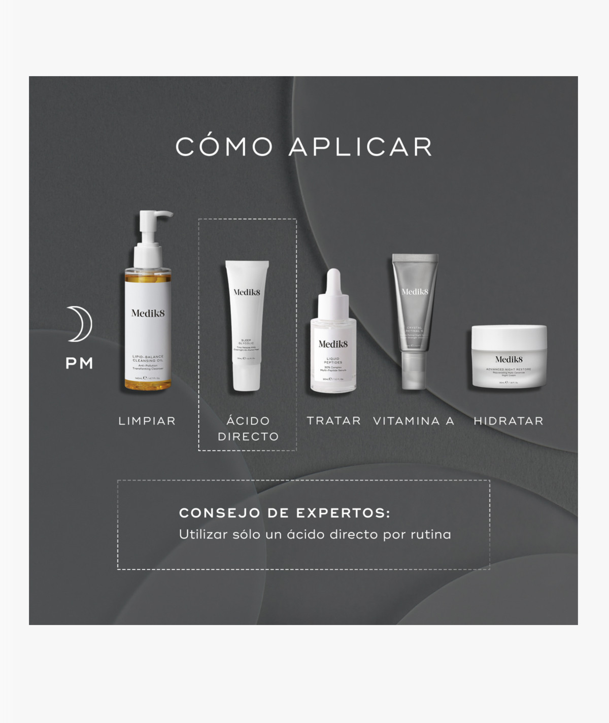 El Medik8 Sleep Glycolic 30ml es un tratamiento avanzado diseñado para mejorar la textura y luminosidad de la piel durante la noche. Su fórmula con ácido glicólico actúa como un exfoliante suave, eliminando las células muertas y promoviendo la renovación celular. Además, está enriquecido con activos hidratantes que aseguran una piel suave y nutrida al despertar.